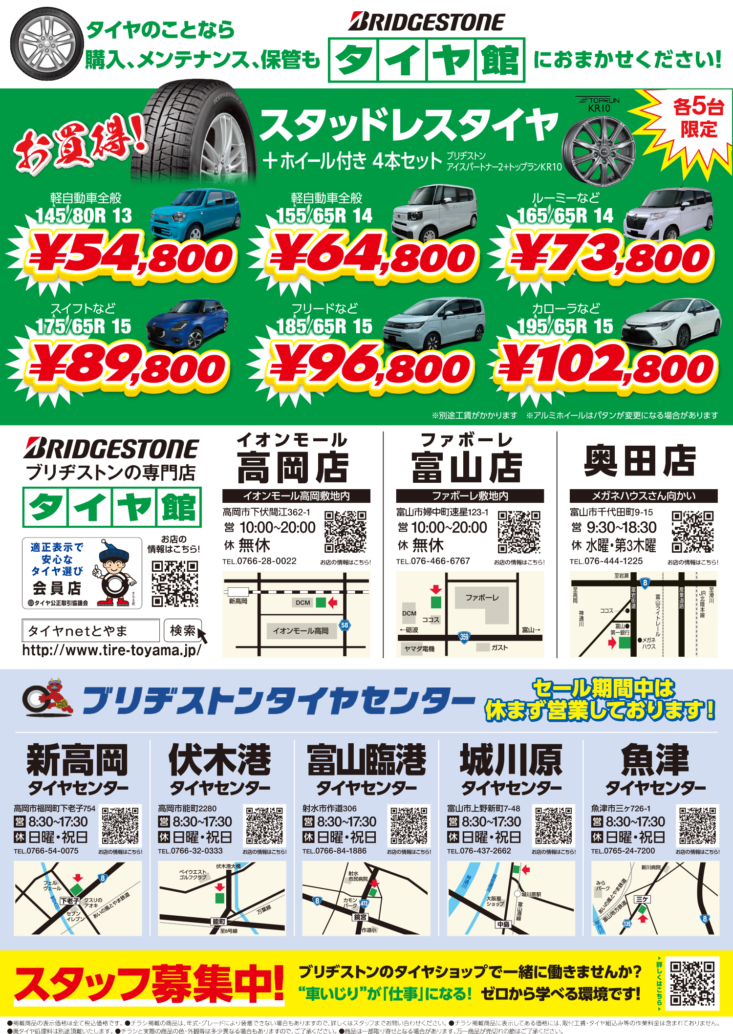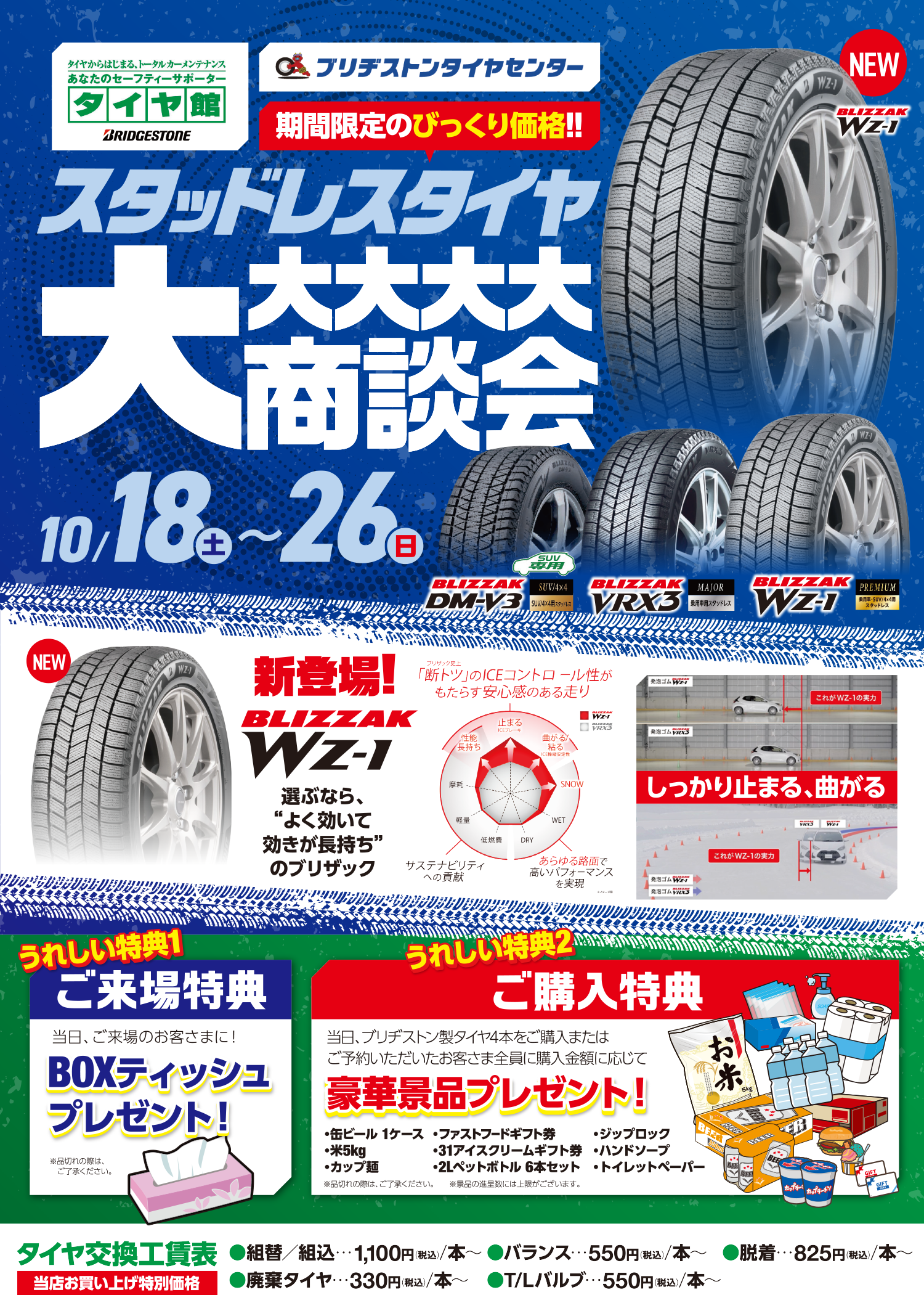 期間中は、ブリヂストンのスタッドレスタイヤをはじめ、夏タイヤもお買い得!